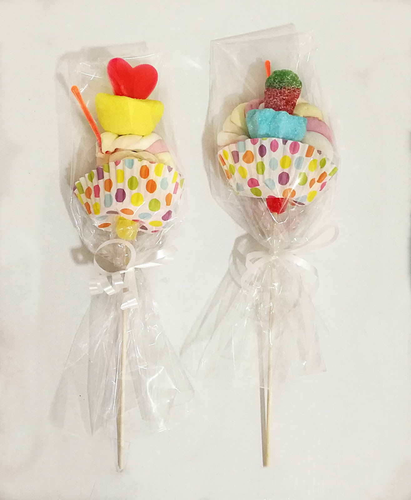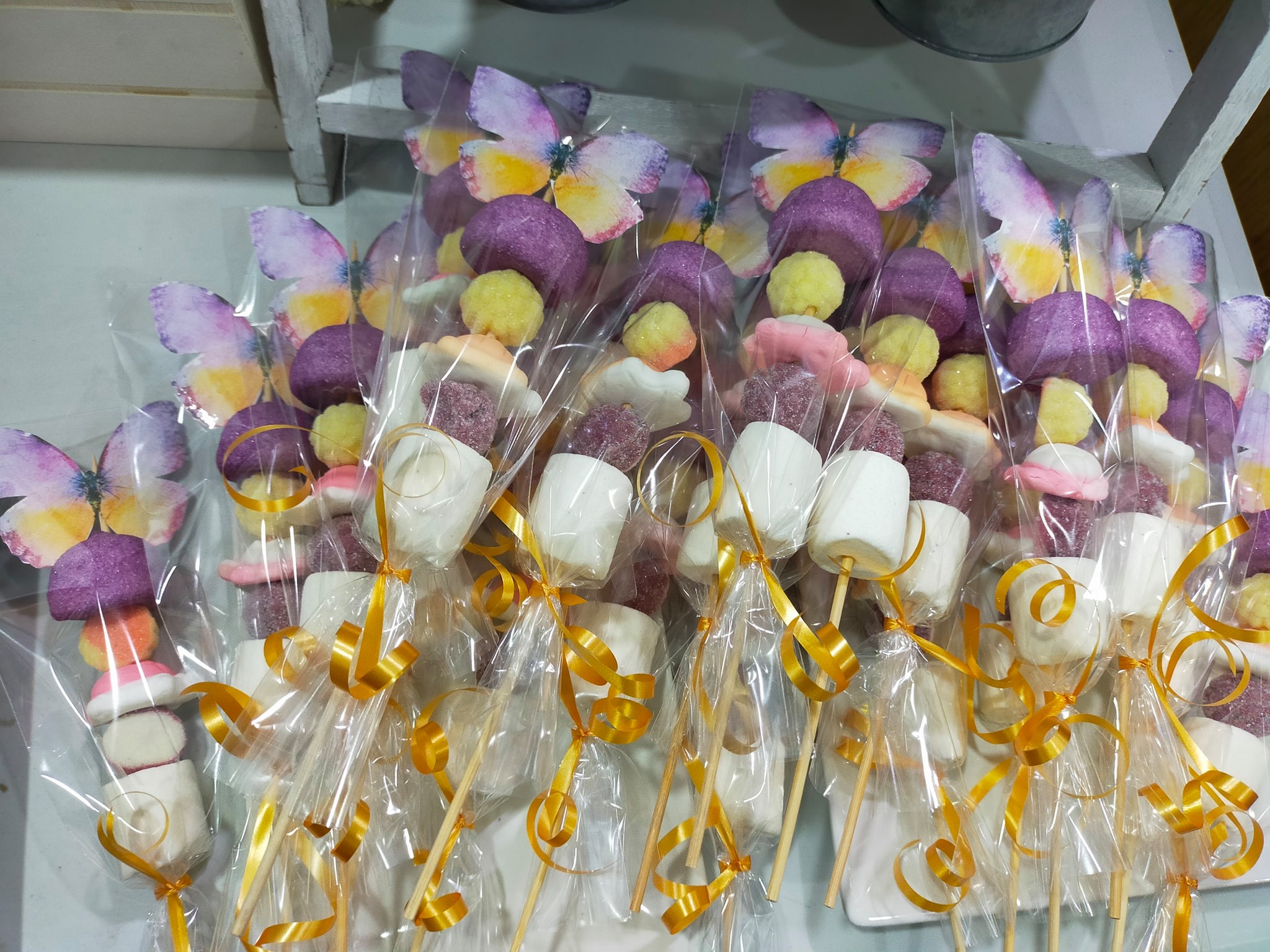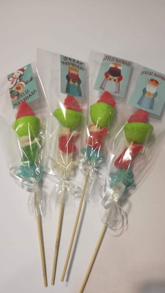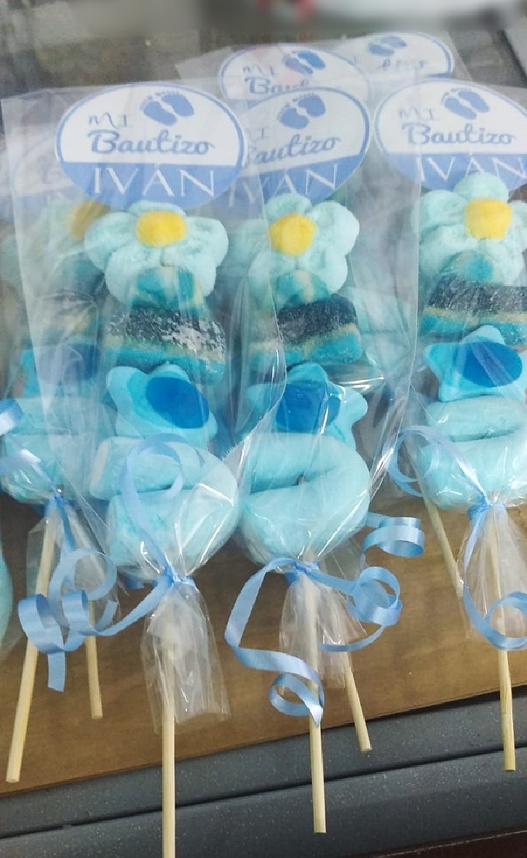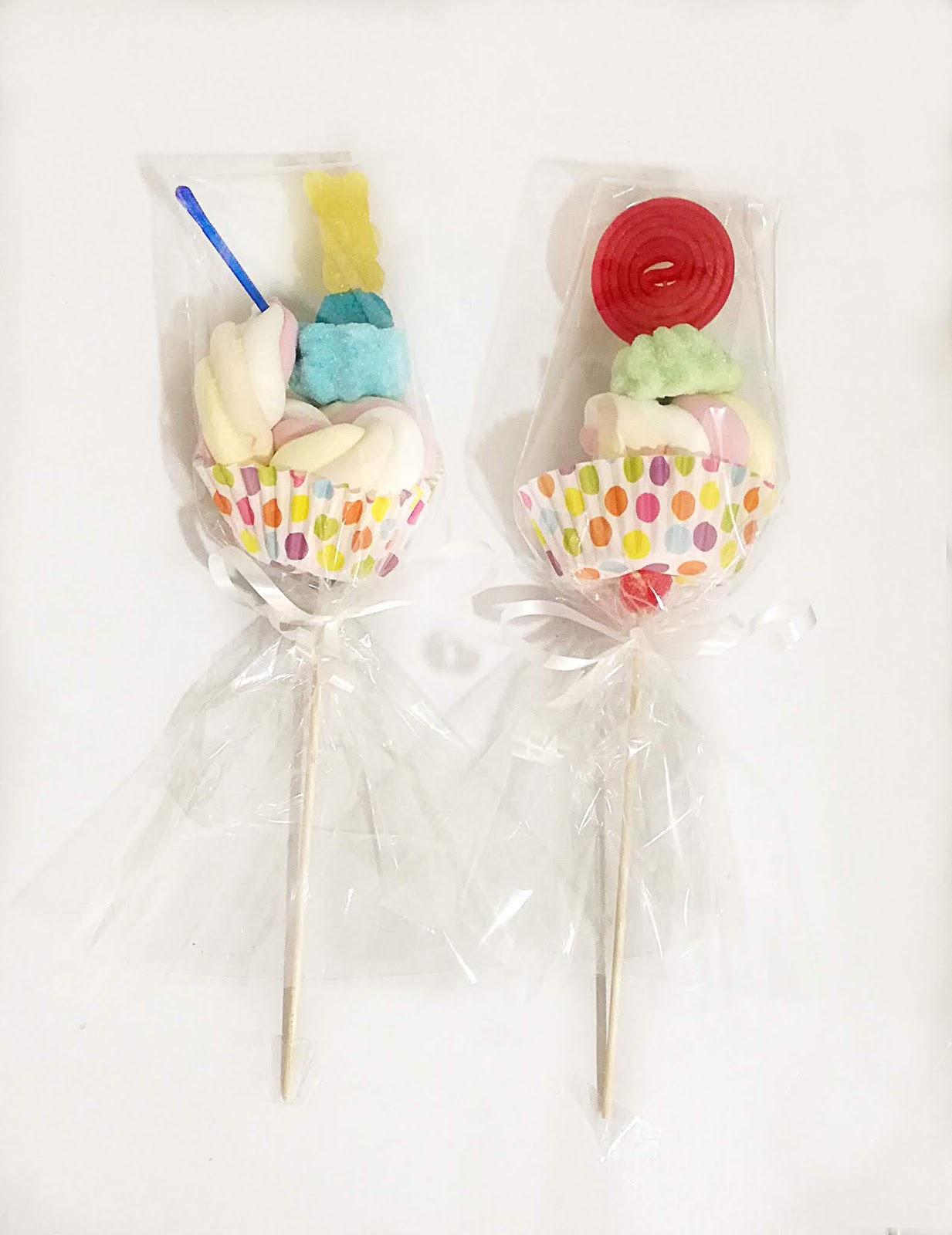 No pueden faltar en ninguna fiesta unos detallitos de chuches, brochetitas o chocolatinas personalizadas. Sorprende a todo el mundo con unas deliciosa y vistosa brocheta de chucherías totalmente personalizadas. Aquí tienes algunos modelos que hemos realizado, pero podemos hacerlo como más te guste. Podemos crear con ellas ramos, recrear animales o construir una combinación de colores a juego con tu evento, logotipo, etc…
