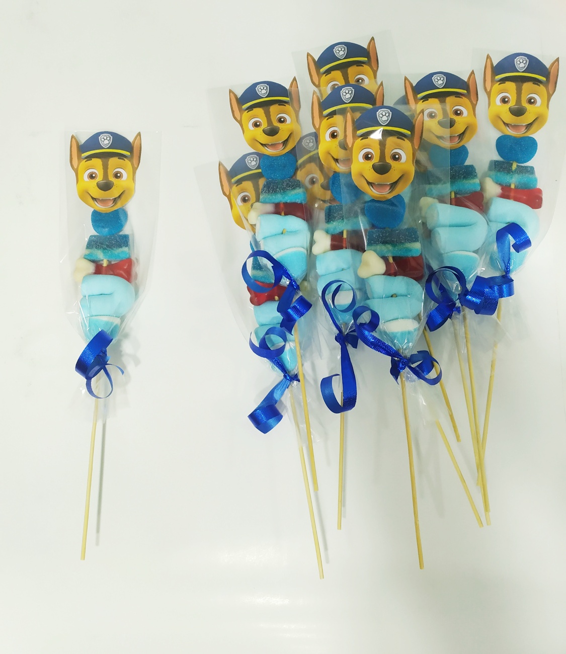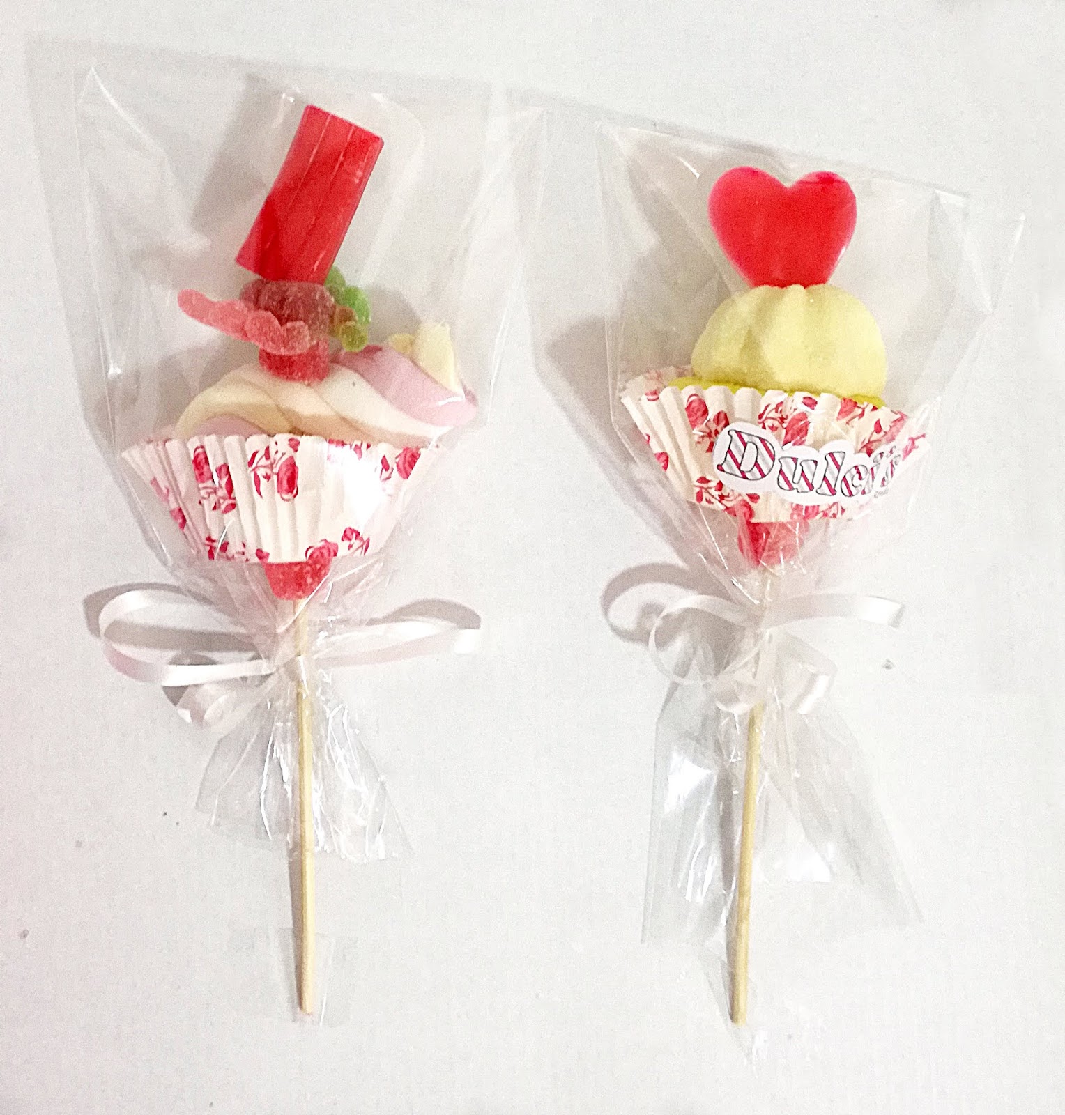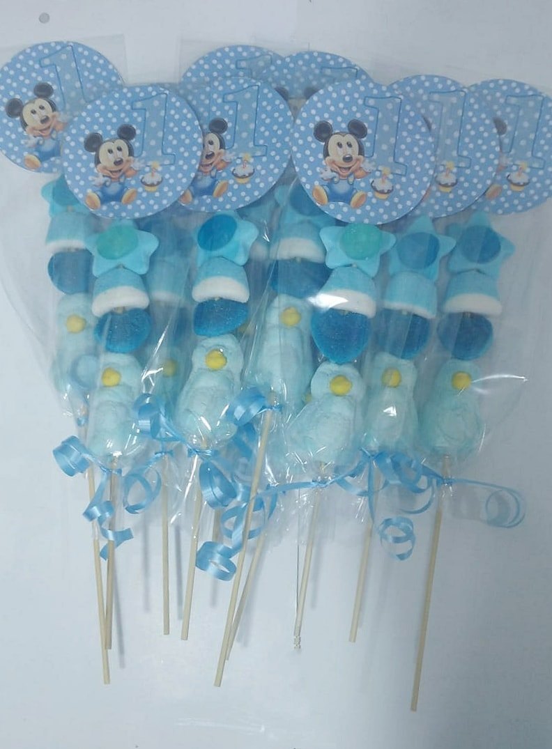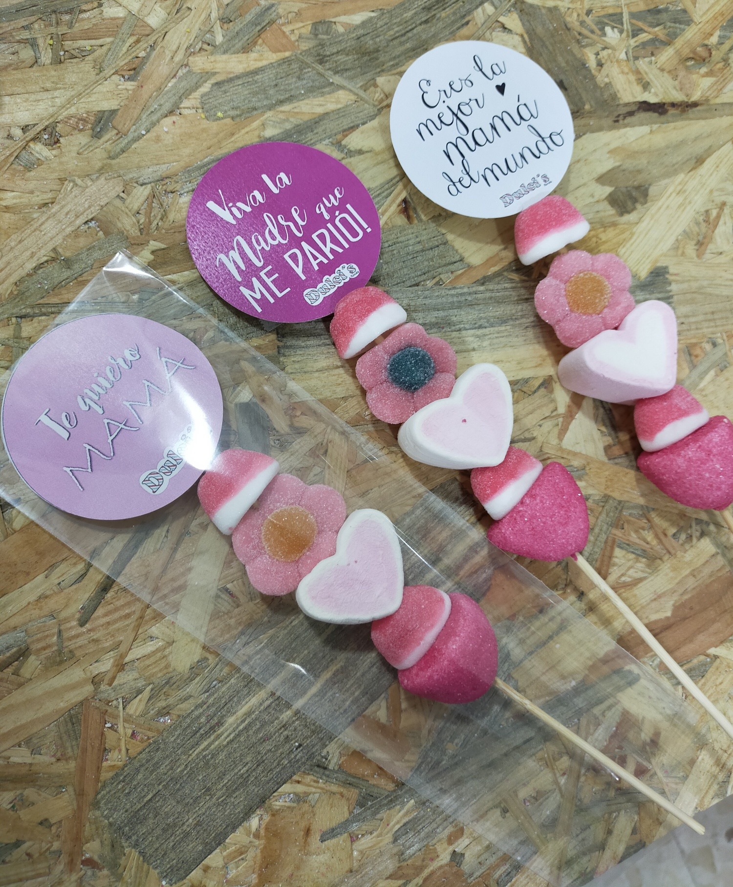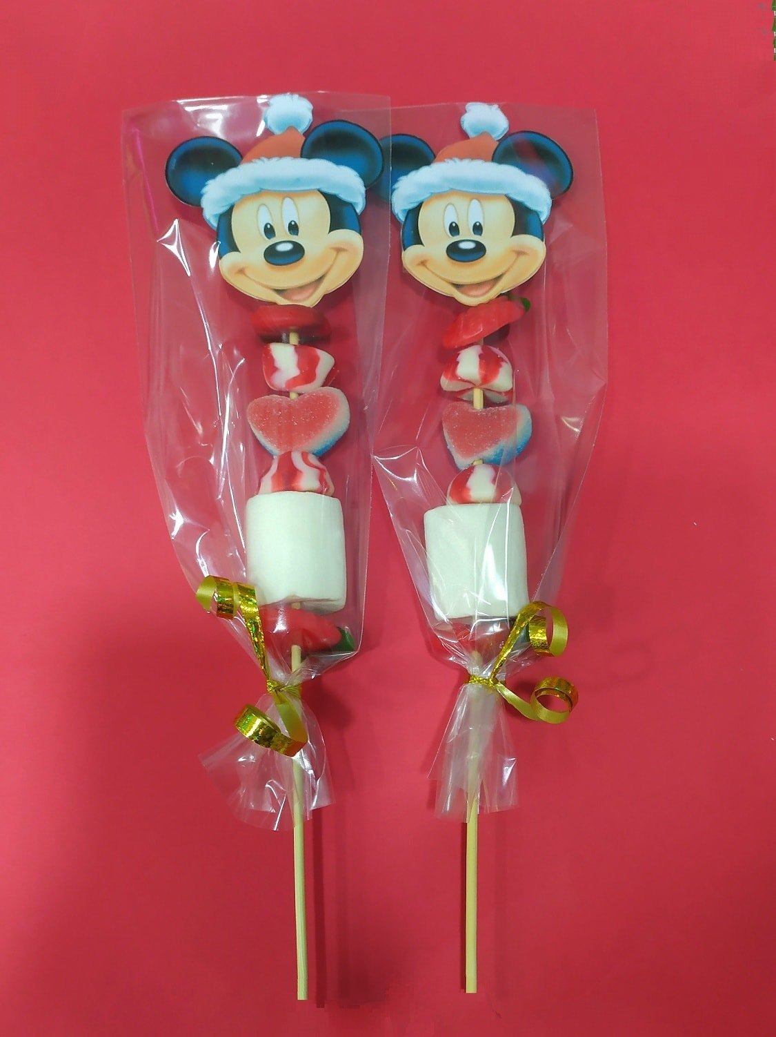 No pueden faltar en ninguna fiesta unos detallitos de chuches, brochetitas o chocolatinas personalizadas. Sorprende a todo el mundo con unas deliciosa y vistosa brocheta de chucherías totalmente personalizadas. Aquí tienes algunos modelos que hemos realizado, pero podemos hacerlo como más te guste. Podemos crear con ellas ramos, recrear animales o construir una combinación de colores a juego con tu evento, logotipo, etc…