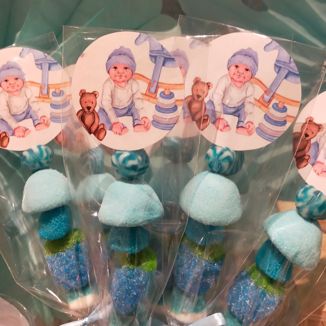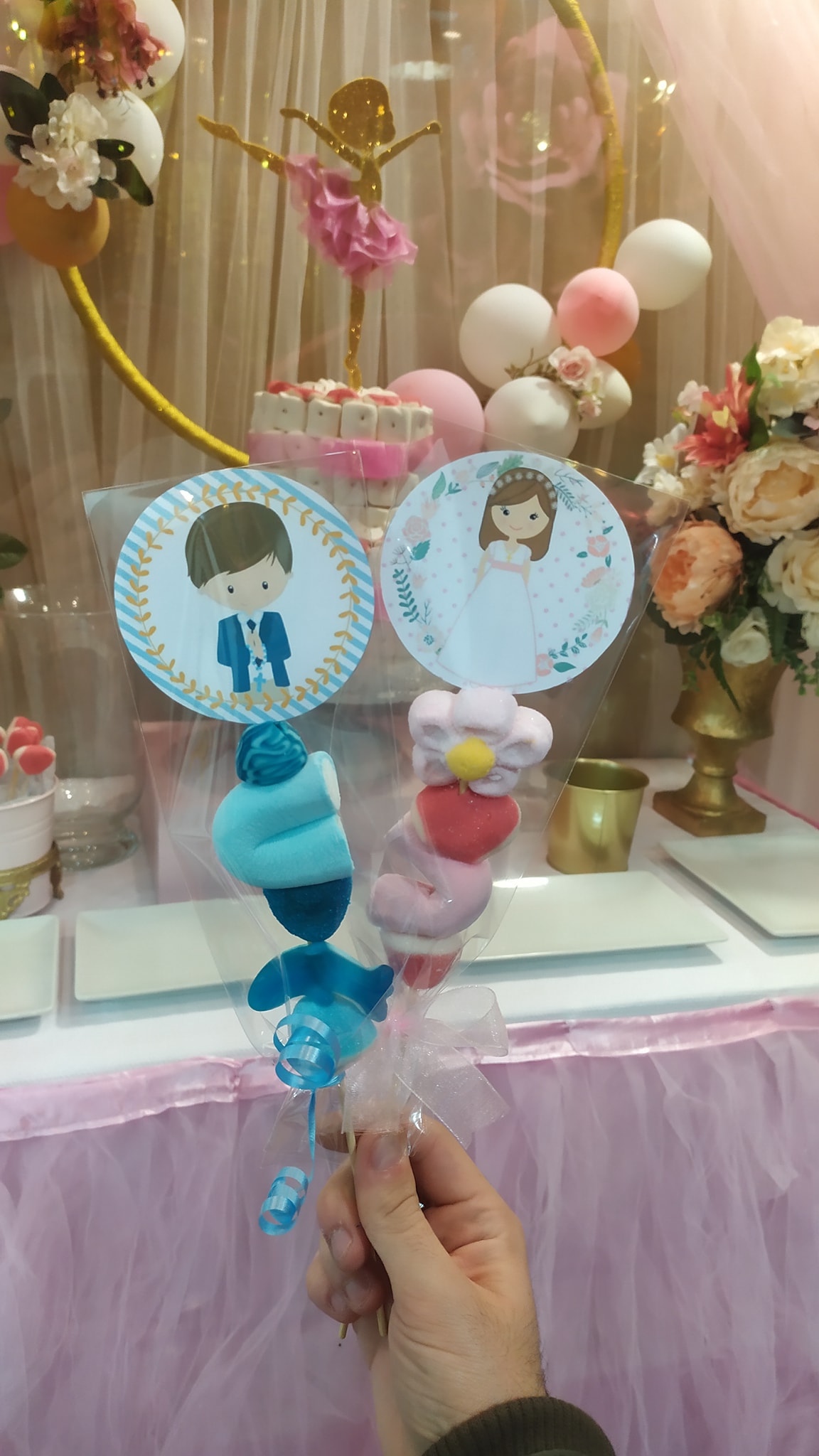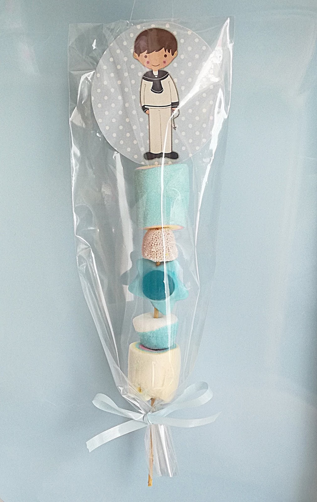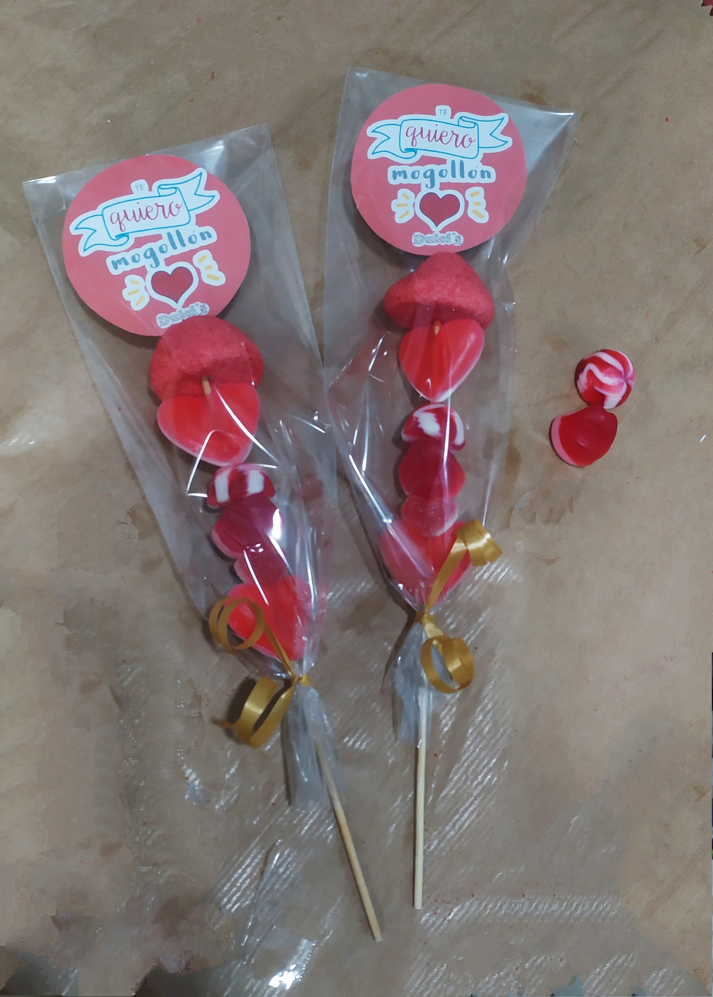 No pueden faltar en ninguna fiesta unos detallitos de chuches, brochetitas o chocolatinas personalizadas. Sorprende a todo el mundo con unas deliciosa y vistosa brocheta de chucherías totalmente personalizadas. Aquí tienes algunos modelos que hemos realizado, pero podemos hacerlo como más te guste. Podemos crear con ellas ramos, recrear animales o construir una combinación de colores a juego con tu evento, logotipo, etc…