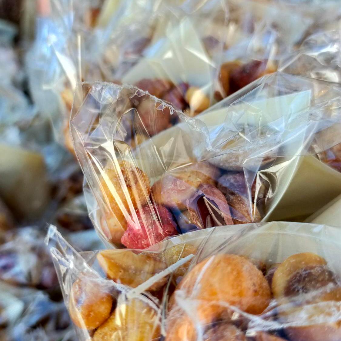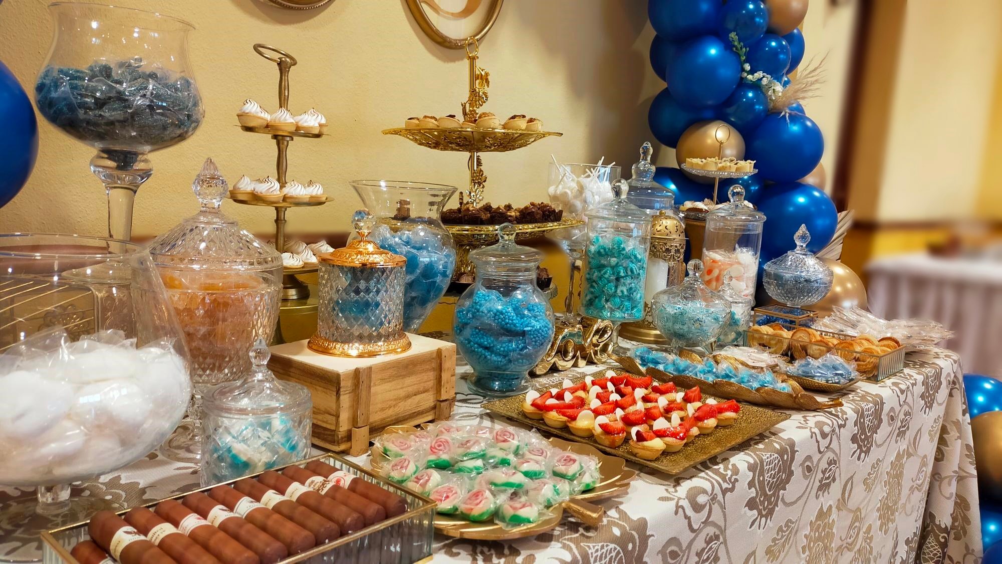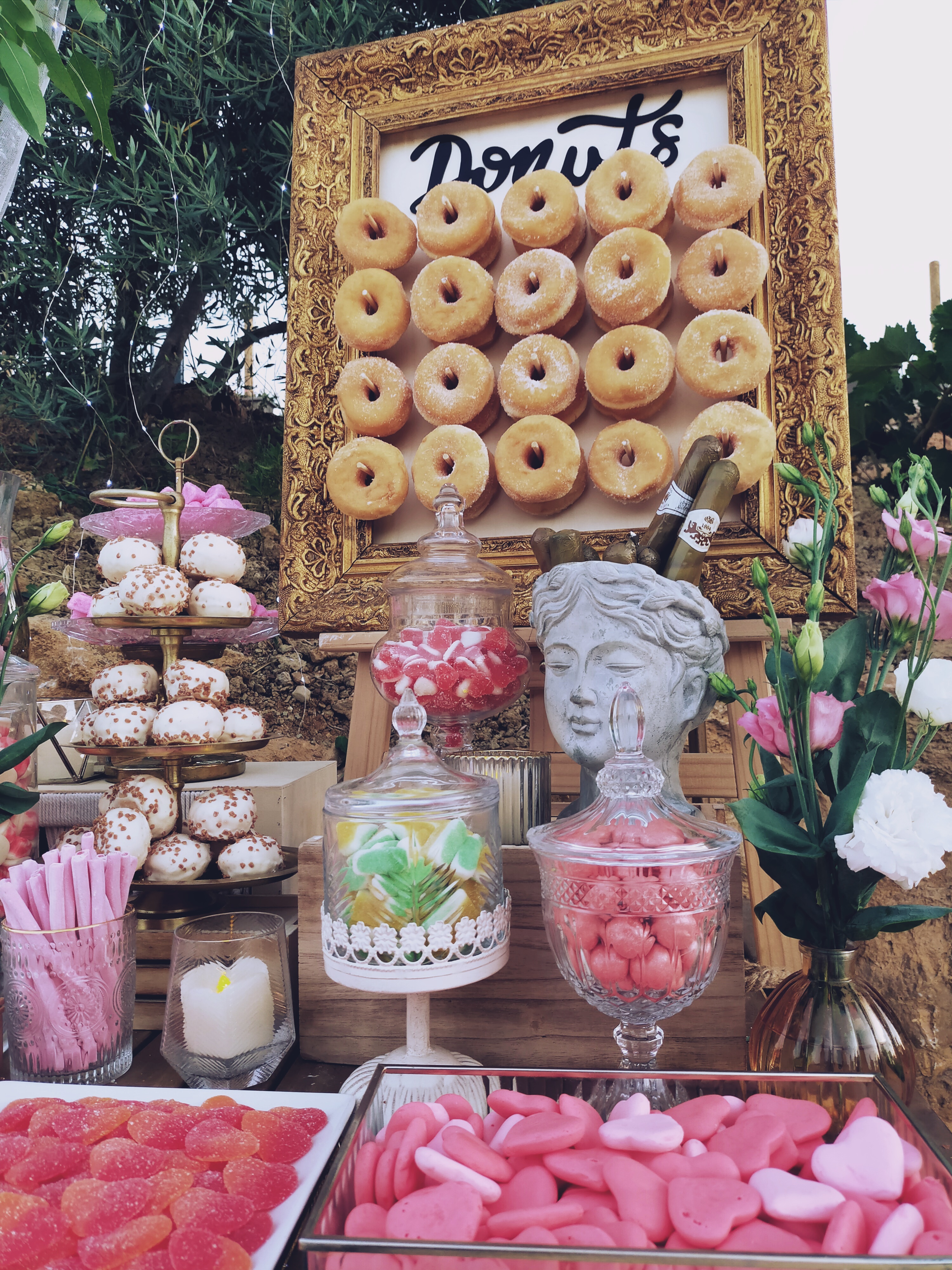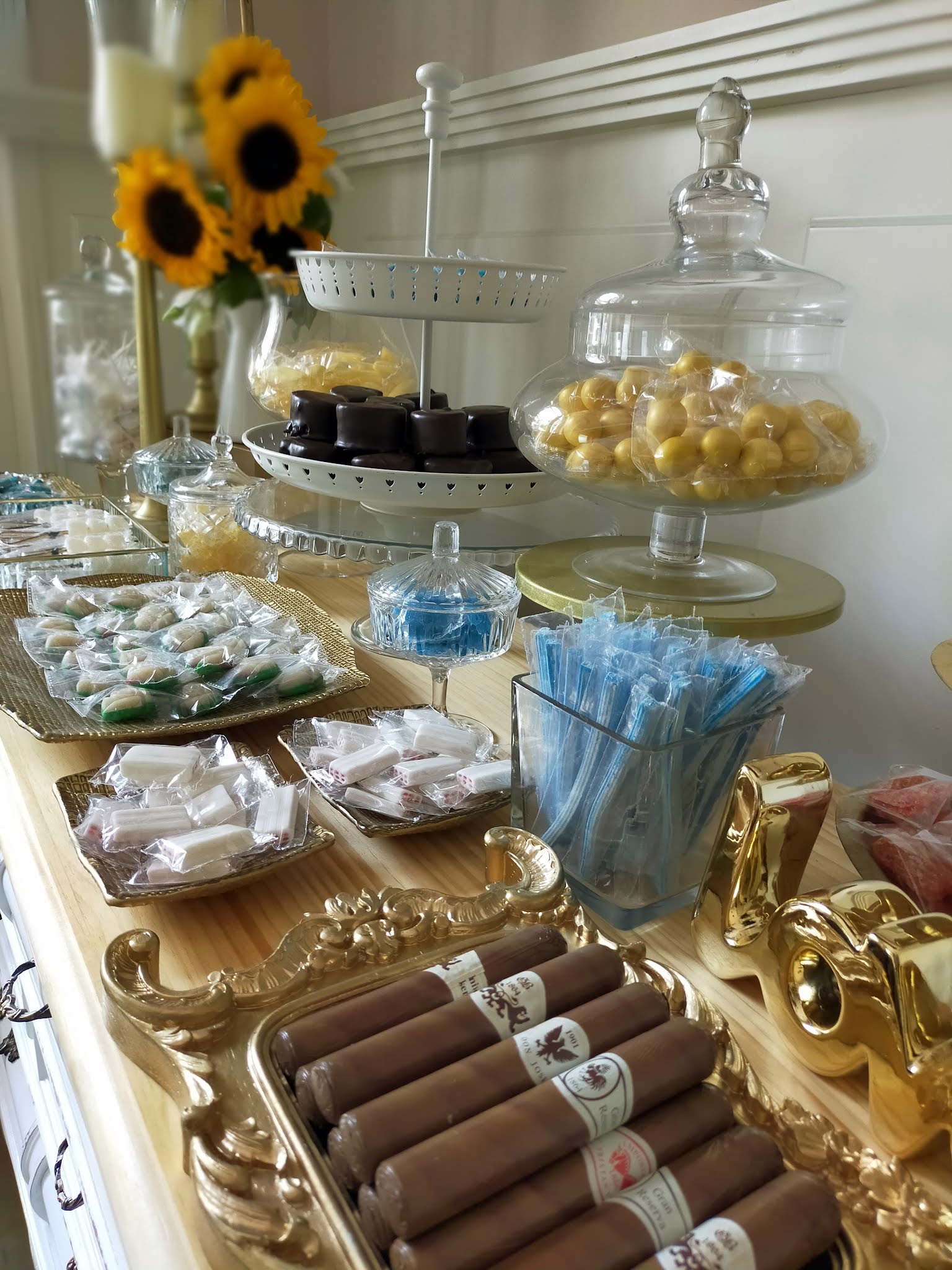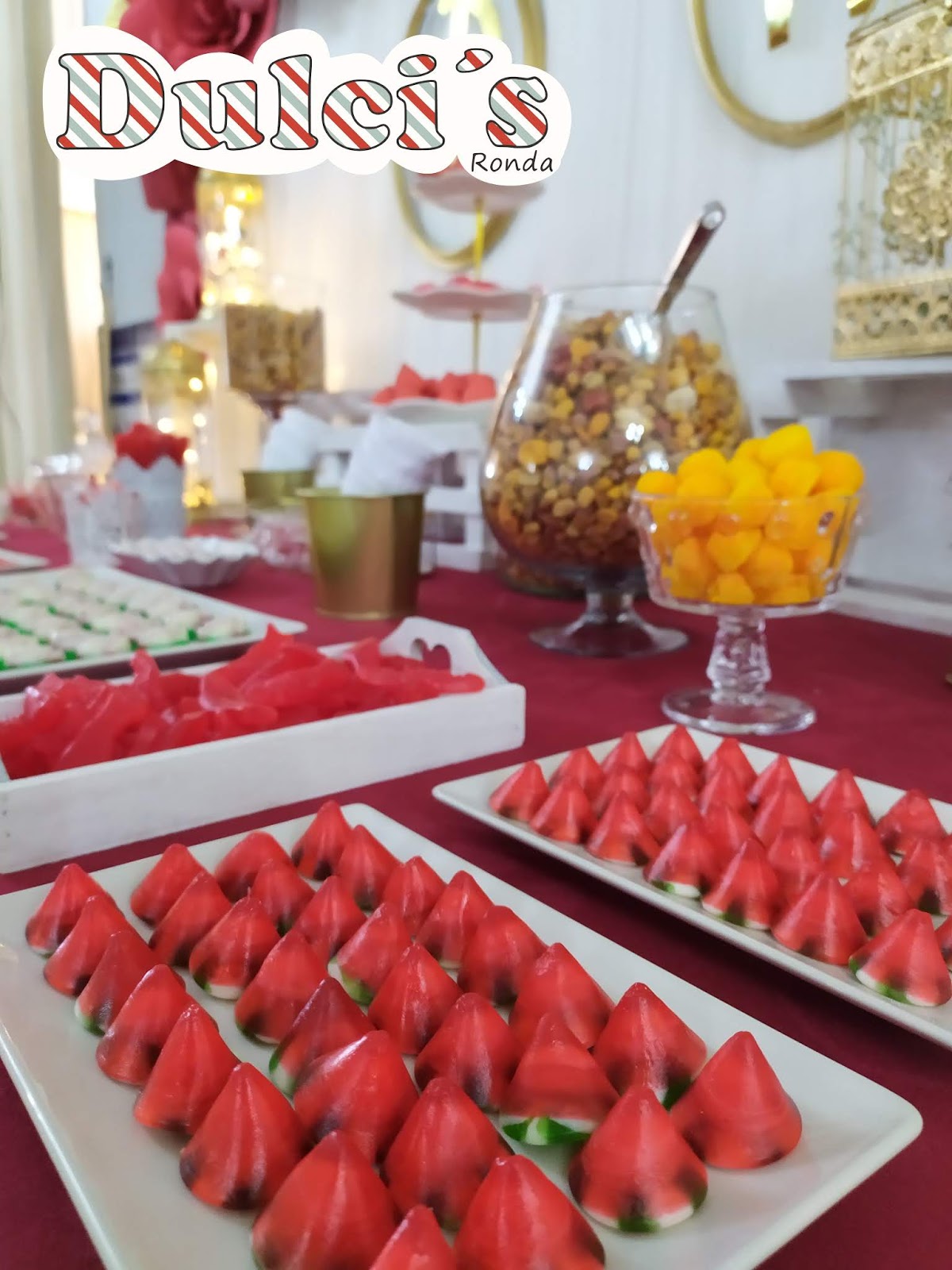 Añade frutos secos, fruta seca, pasteles…. para endulzar la fiesta en tu celebración, paquetitos de gominolas, e incluso si quieres globos o flores naturales…