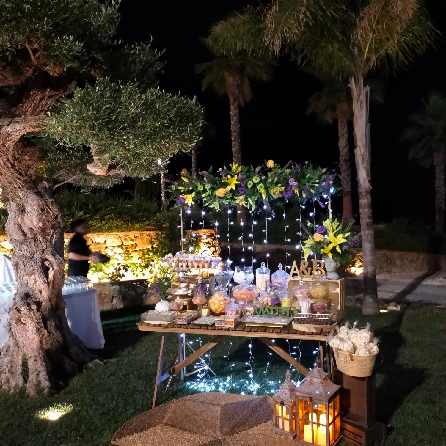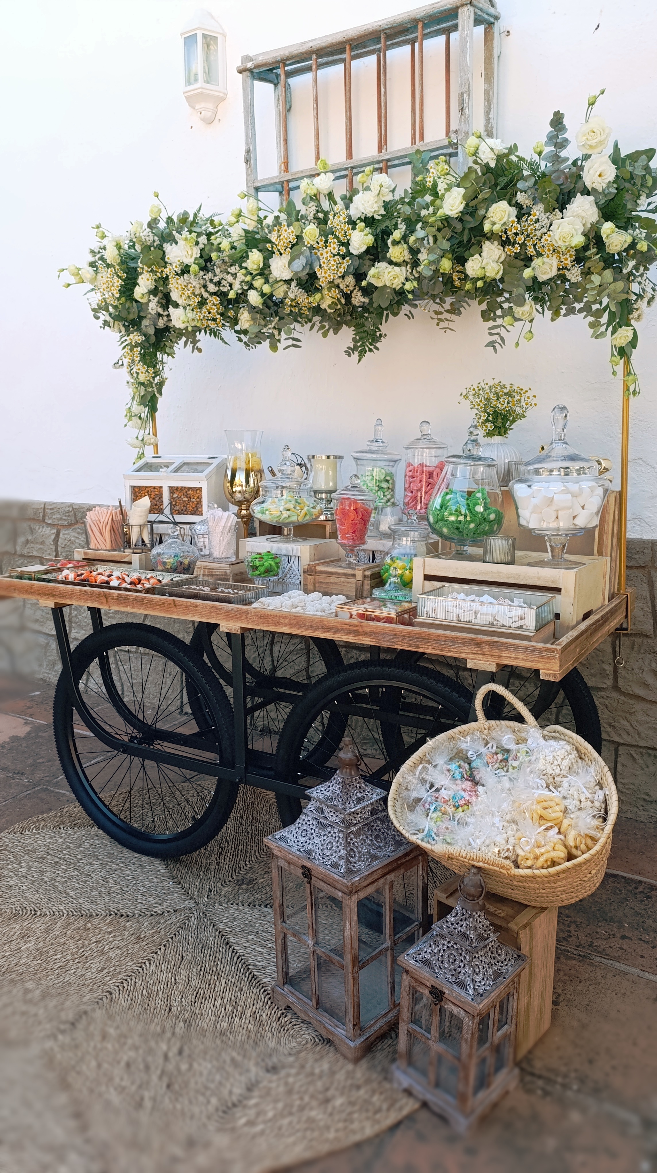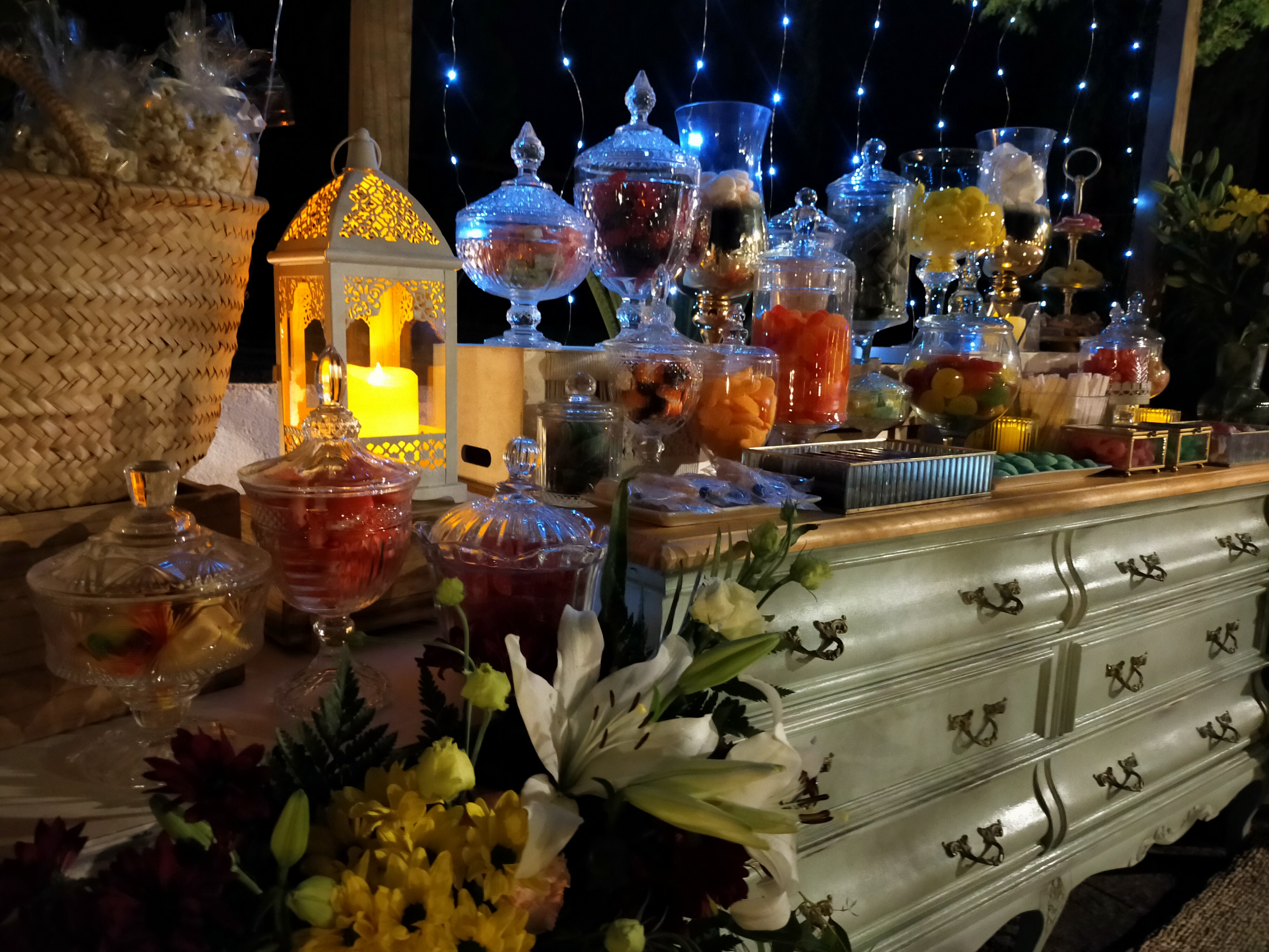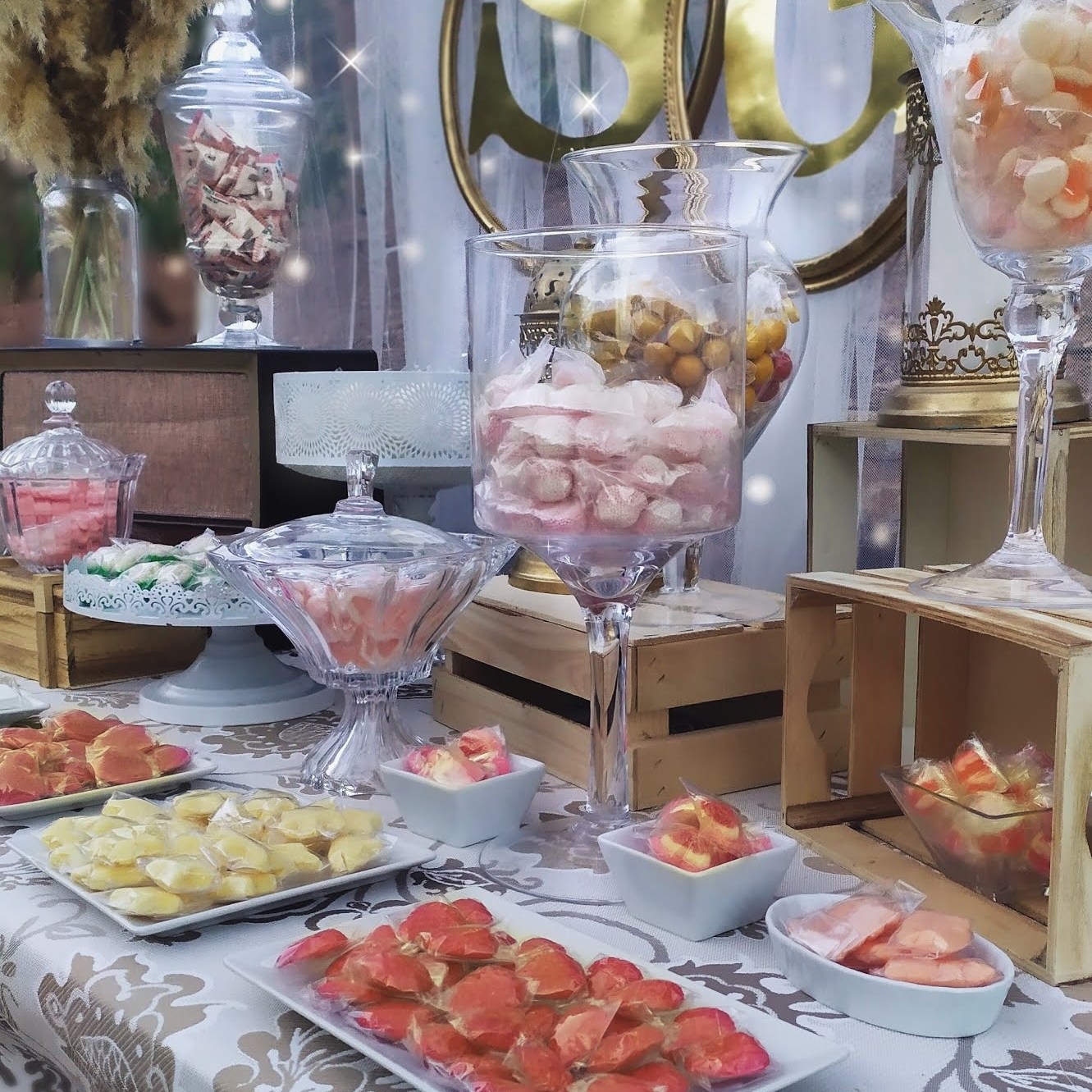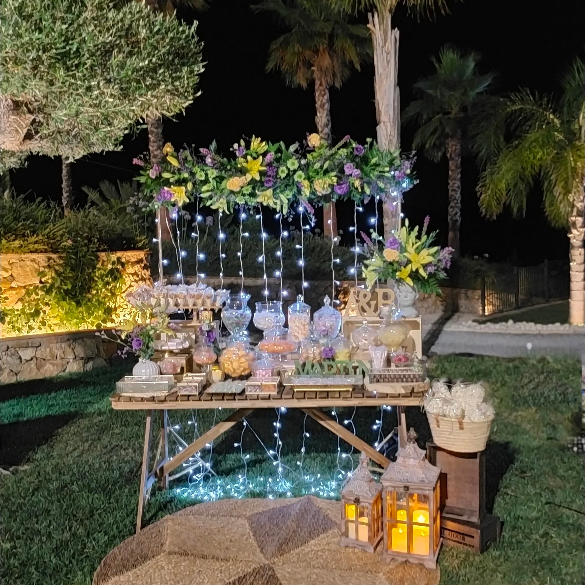 Una mesa exquisitamente decorada, a tu gusto y al estilo de todo el evento; Con una selección de gominolas, minipasteles y productos únicos, para que tus propios invitados se sirvan lo que más les guste. Es también una forma divertida de animar tu boda y un rincón imprescindible.