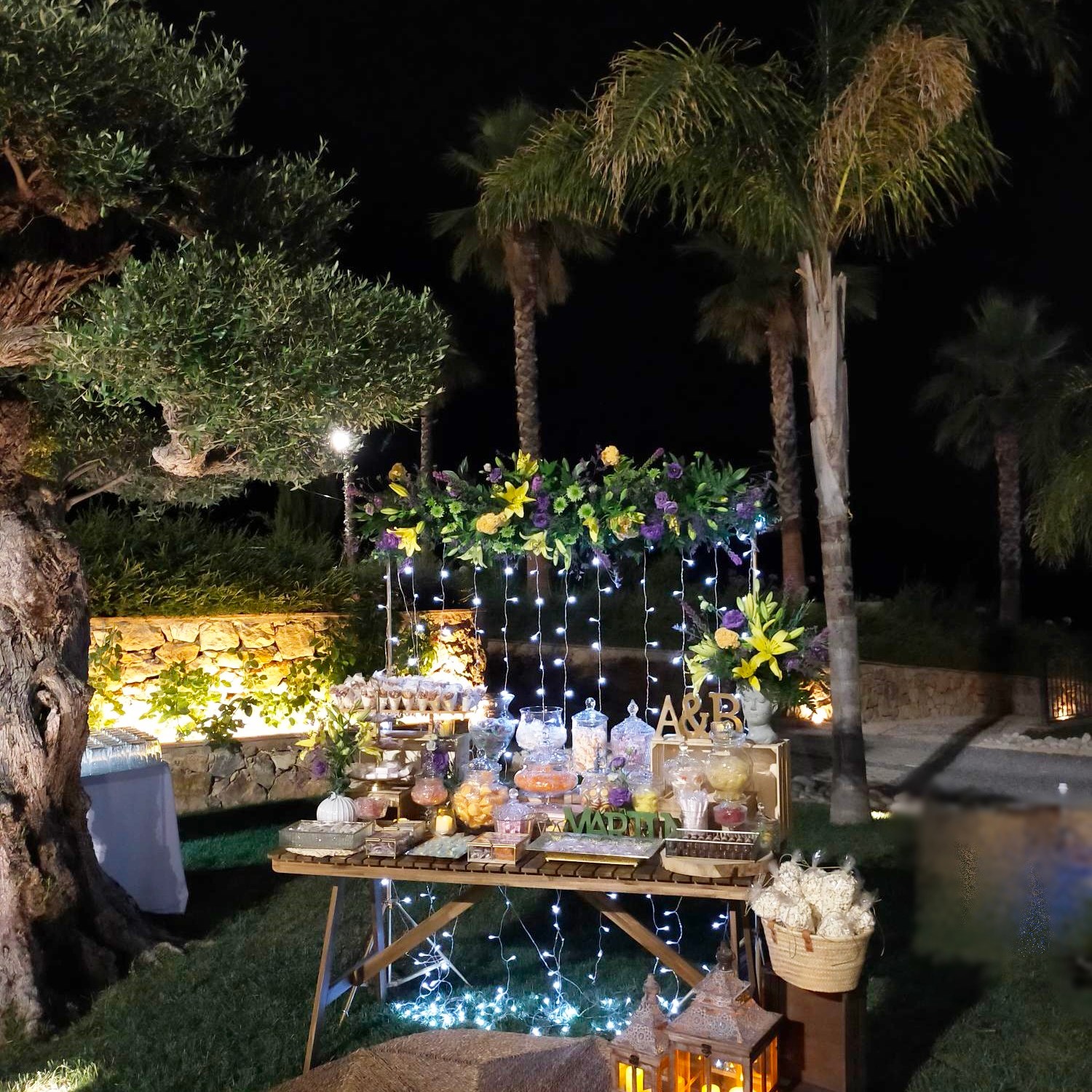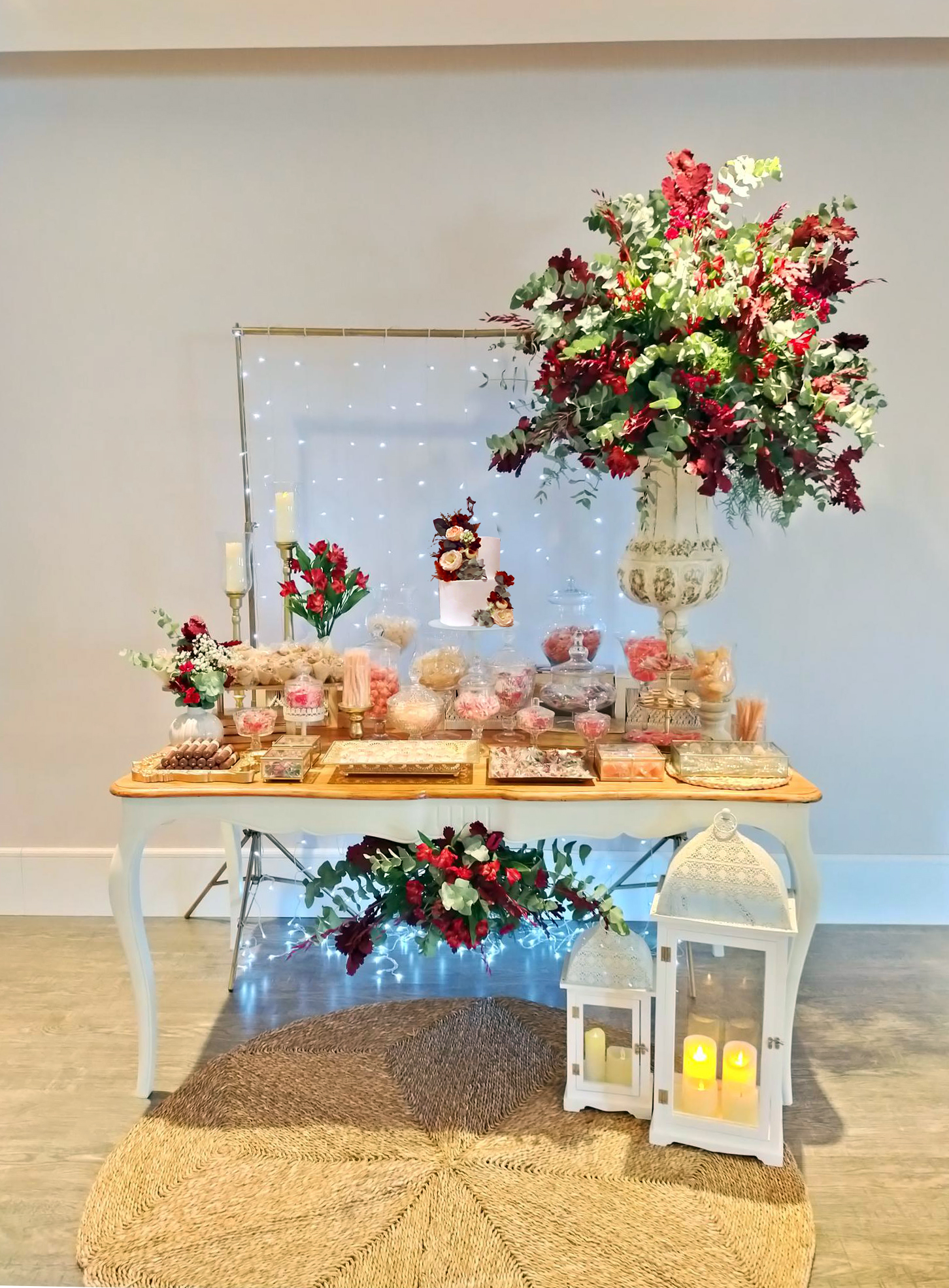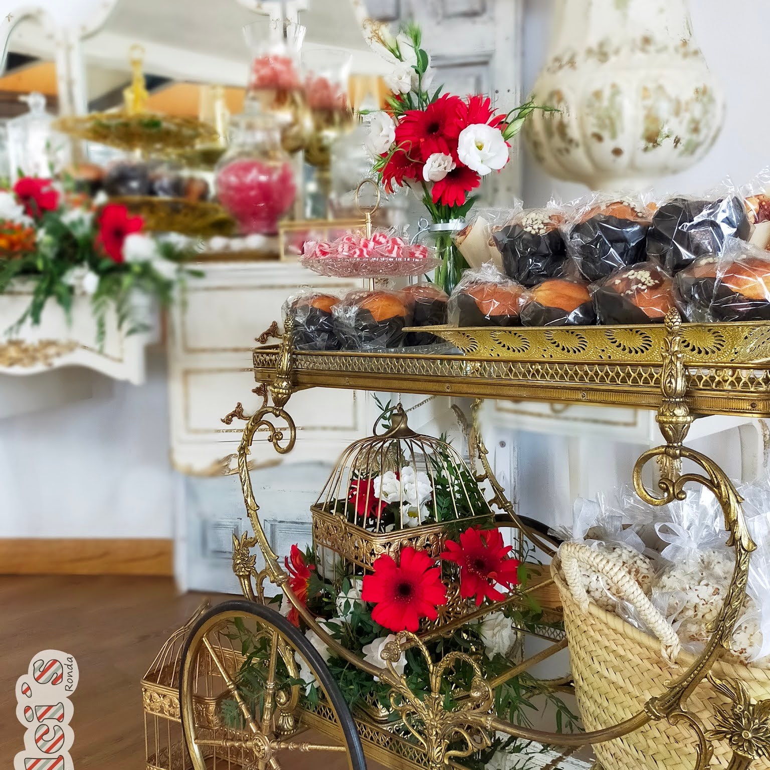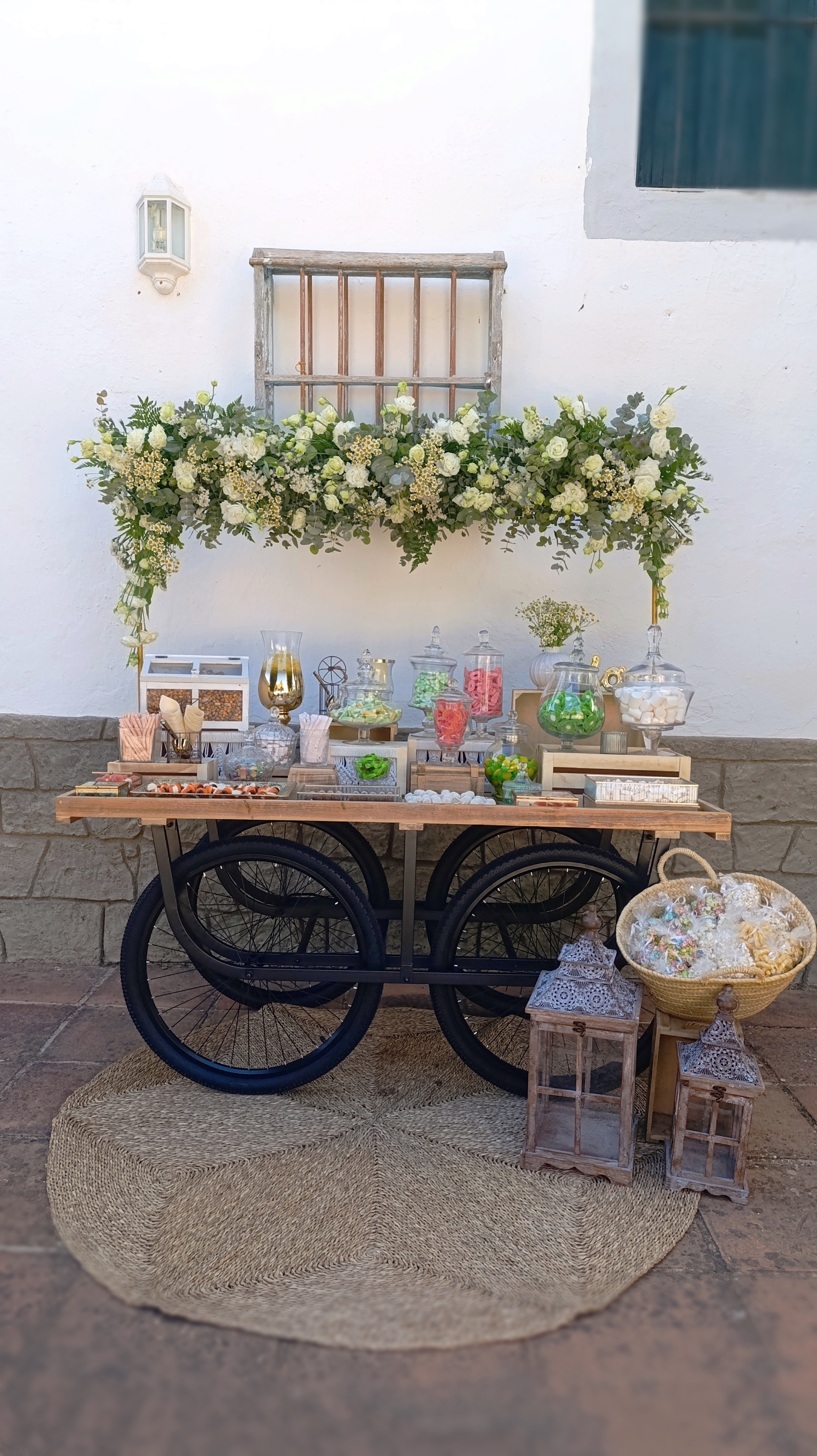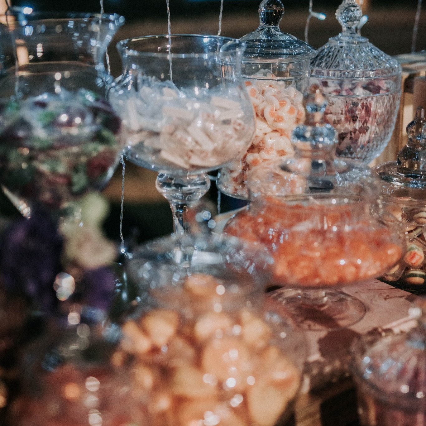 Una mesa exquisitamente decorada, a tu gusto y al estilo de todo el evento; Con una selección de gominolas, minipasteles y productos únicos, para que tus propios invitados se sirvan lo que más les guste. Es también una forma divertida de animar tu boda y un rincón imprescindible.