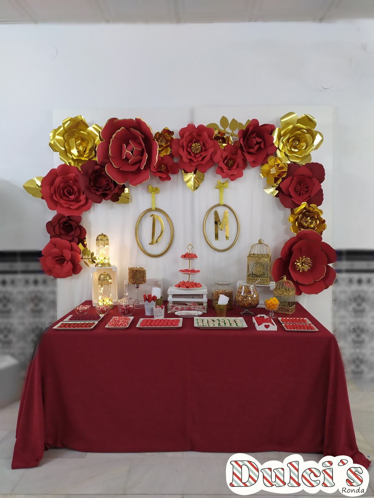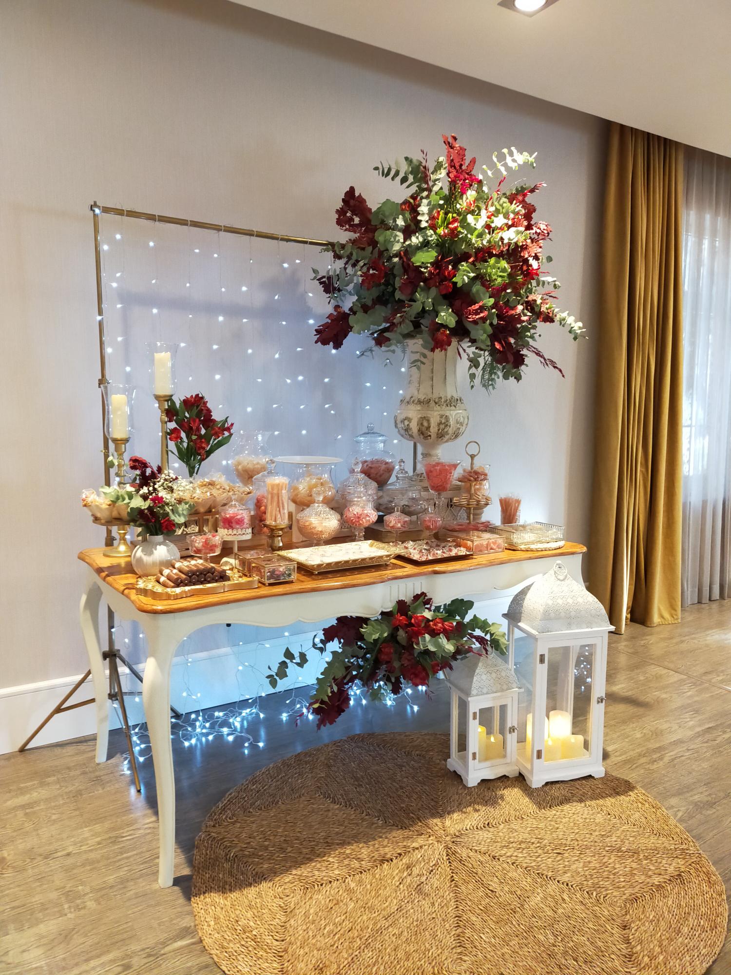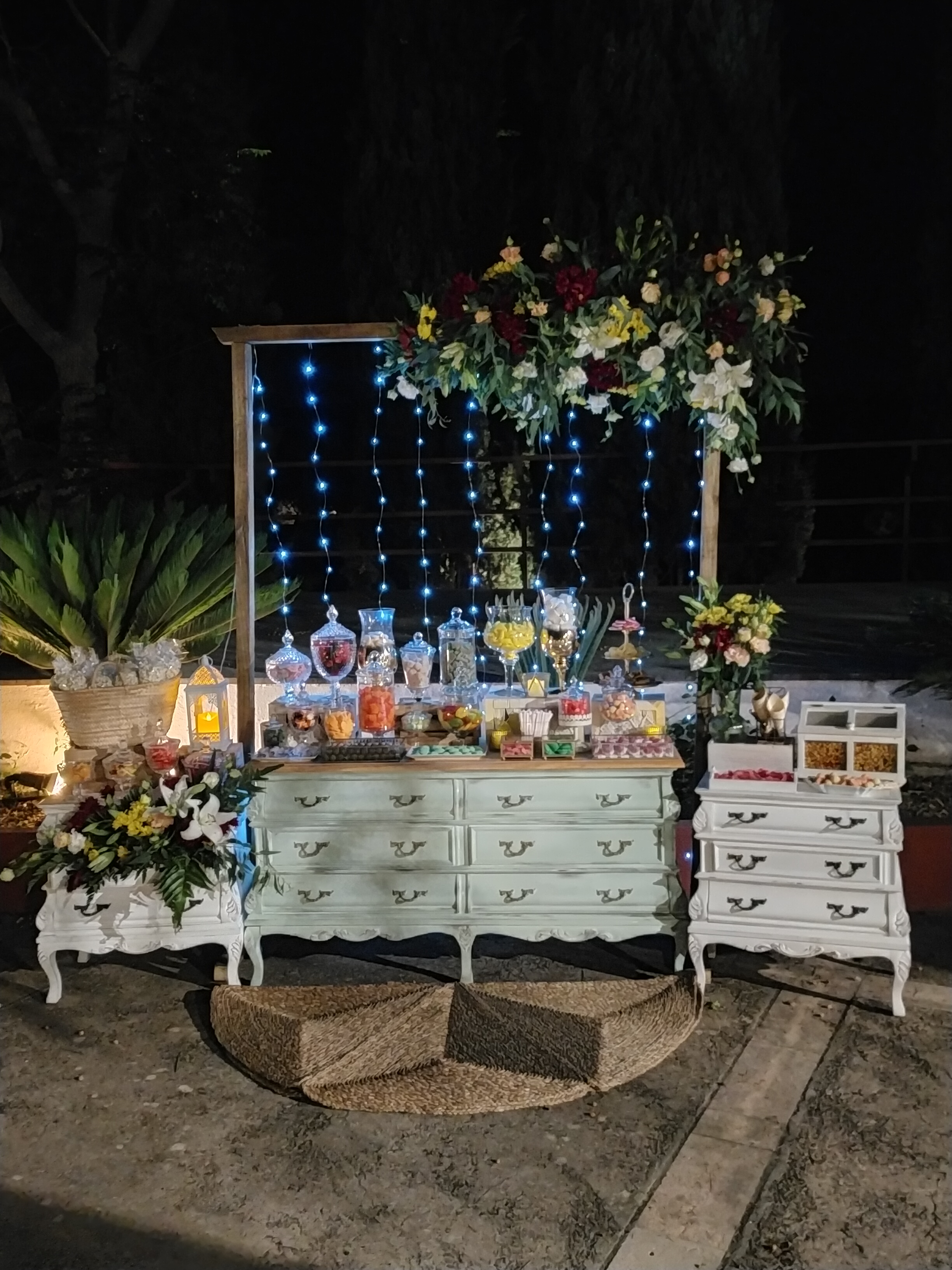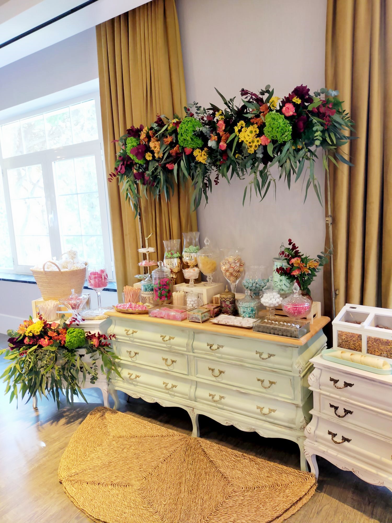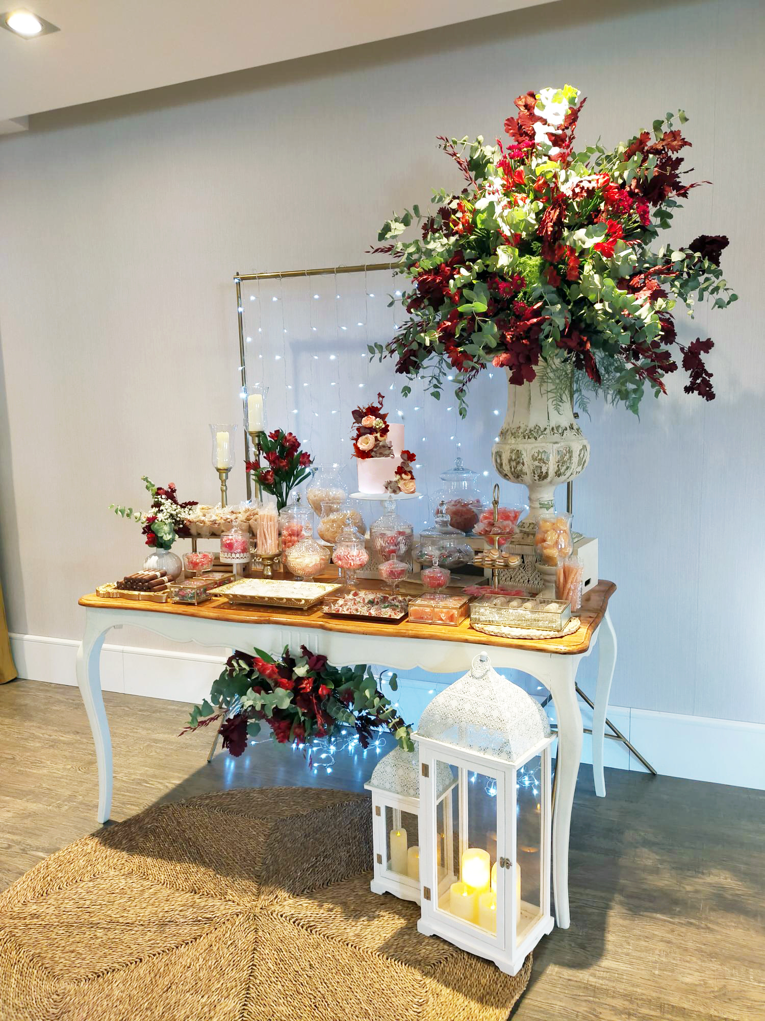 Una mesa exquisitamente decorada, a tu gusto y al estilo de todo el evento; Con una selección de gominolas, minipasteles y productos únicos, para que tus propios invitados se sirvan lo que más les guste. Es también una forma divertida de animar tu boda y un rincón imprescindible.